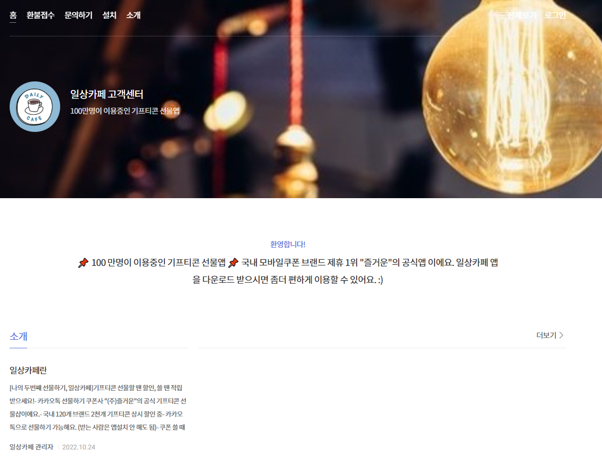 국내 제휴 브랜드 수 1위 모바일쿠폰 기업 즐거운의 기프티콘 선물 앱 '일상카페'가 고객 개인정보 유출 사고가 발생했다.