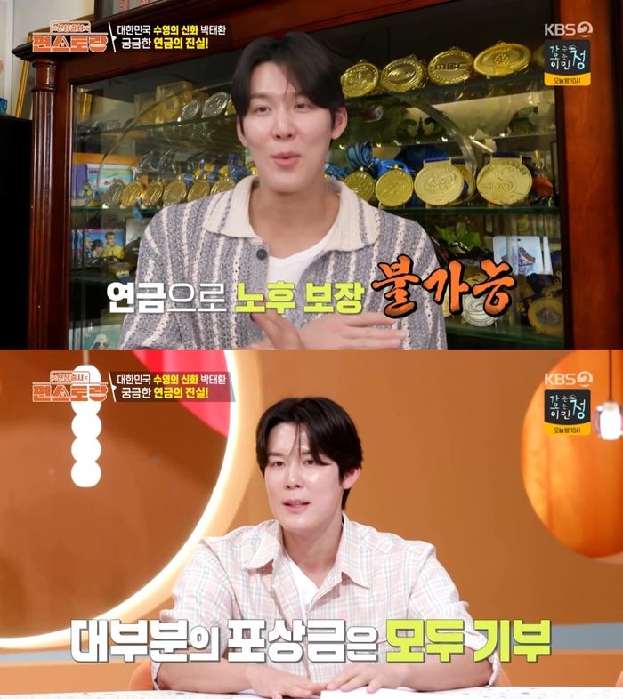 그러나 현실은 달랐습니다. 이날 *‘편스토랑’*에서 박태환은 “연금으로는 평생 먹고살 수 없다”며, 메달리스트의 연금 제도에 대한 현실적인 이야기를 전했습니다.