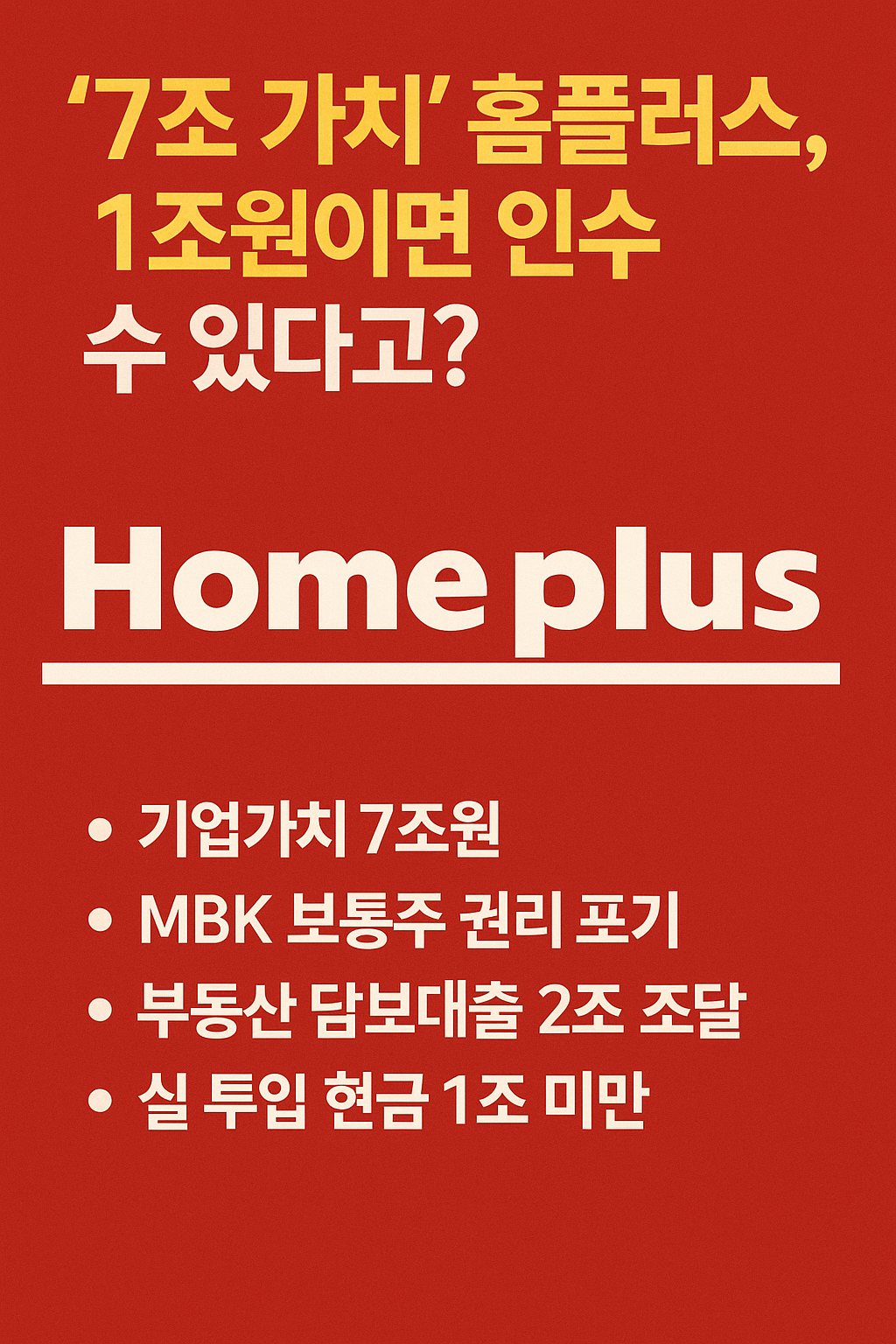 홈플러스 인수, MBK파트너스, 홈플러스 매각, 7조 기업 인수, 홈플러스 부동산, 차입매수 사례, 홈플러스 가치, 홈플러스 구조조정